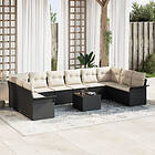 vidaXL 10-delat trädgårdsoff-set med kuddar svart konstrotting