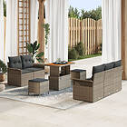 vidaXL 8-delad trädgårdssofa med kuddar Grå polyrotting Akacia