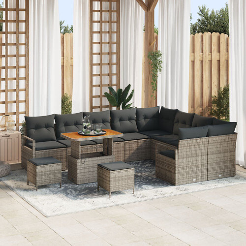 vidaXL 12-delars trädgårdsoffset med kuddar grå polyrotting akacia