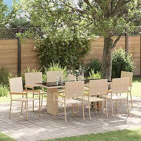 vidaXL 9-delad trädgårdsmatsal beige konstrotting