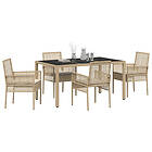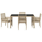 vidaXL Salon de jardin 5 pièces avec coussins beige poly rotin