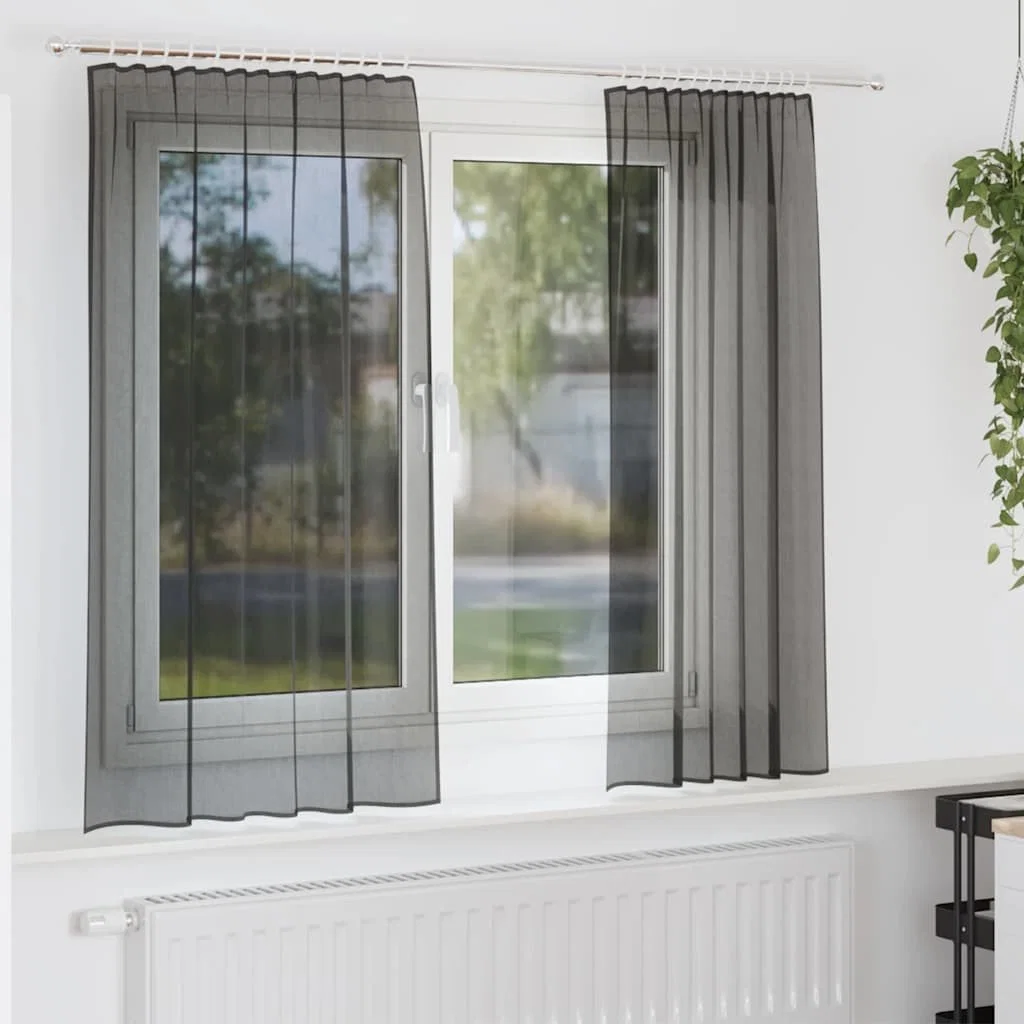 vidaXL Voile gardiner med fliktopp 2 st svart
