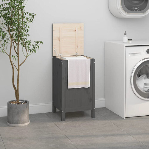 vidaXL Tvättkorg grå 44x44x76 cm massiv furu