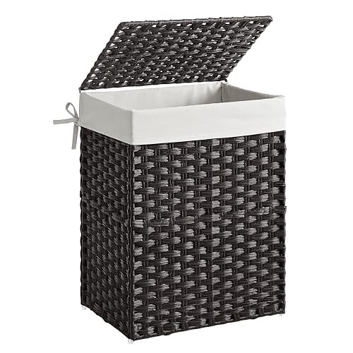 Songmics tvättkorg med 90L lock Svart LCB51BK
