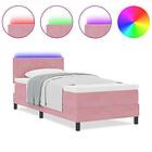 vidaXL Box Spring Bed with Mattress & LED Pink 90x200 cm Velvet