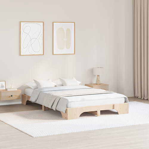 vidaXL Bed Frame Natural Solid Pine wood 135 x 190 cm Bed Frame