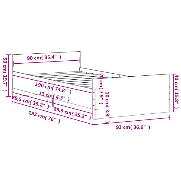 vidaXL Bed Frame without Mattress Smoked Oak 90x190 cm Single Engineered Wood