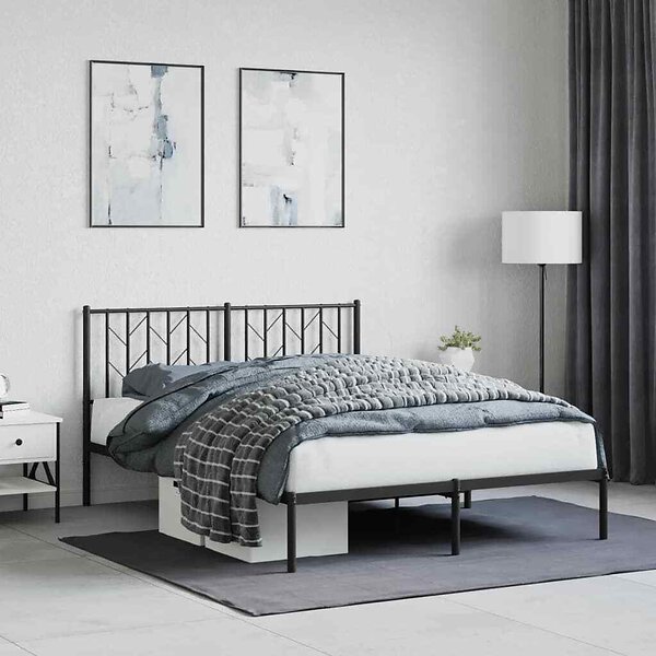 vidaXL Metal Bed Frame without Mattress with Headboard Black 140x190cm