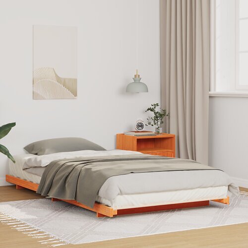 vidaXL Floor Bed Frame Wax brown 100 x 200 cm Solid pine wood