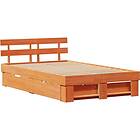vidaXL Bed Frame with Drawers Wax Brown 135 x 190 cm Solid Pine Wood