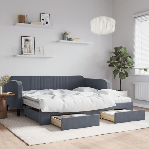 vidaXL Lit de jour extensible avec tiroirs gris foncé 100x200 cm velours