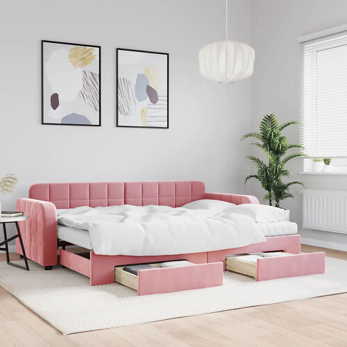 vidaXL Lit de jour extensible avec tiroirs rose 80x200 cm velours