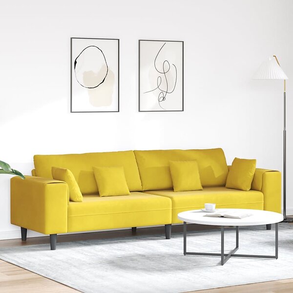 vidaXL Velvet Sofa with Cushion Yellow 210 cm Velvet