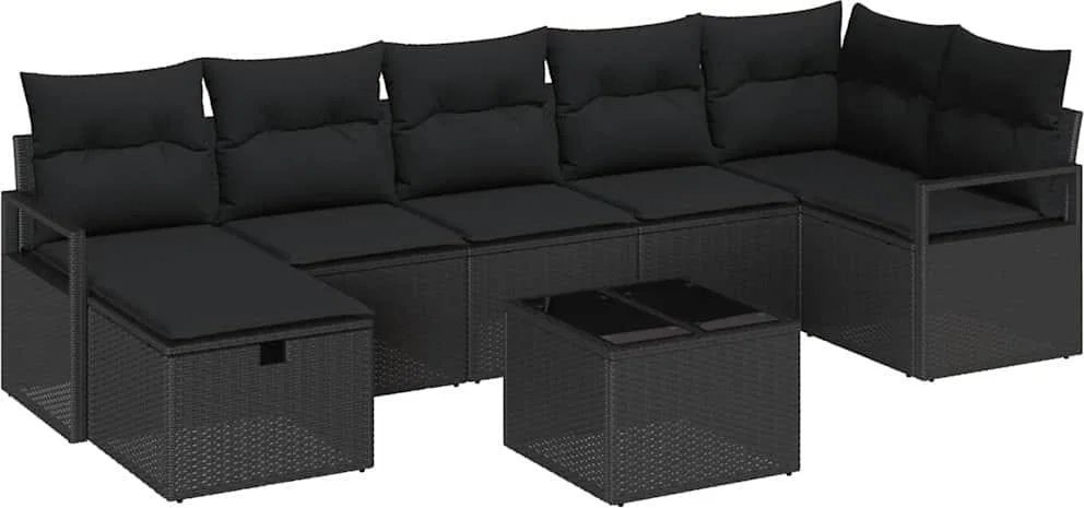 vidaXL Ensemble de canapés de jardin 8 pcs Noir 287 x 122 x 85 cm Poly rotin