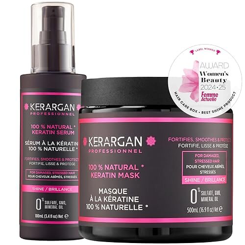 Le meilleur prix pour Kerargan Masque et sérum à la kératine pour cheveux abîmés et stressés (500ml, 100ml) est actuellement de 49,45 €. leDénicheur compare les promos et les offres de 2 marchands en ligne.