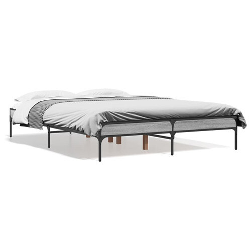 vidaXL Cadre de lit gris sonoma 135x190 cm bois d'ingénierie et métal