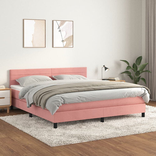 vidaXL Ramsäng med madrass rosa 180x200 cm sammet 3141382