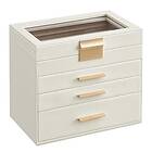 Songmics JBC161W01 Boîte à bijoux avec couvercle en verre, bijoux 4 niveaux, 3 tiroirs, blanc nuage et or