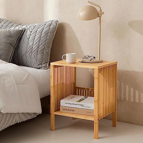 en.casa Varde Table de chevet avec étagère 50x38.5x33cm Bambou