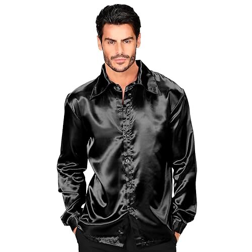 W WIDMANN MILANO 95483 Chemise disco années 70 chemise à manches longues chemise en satin costume de carnaval