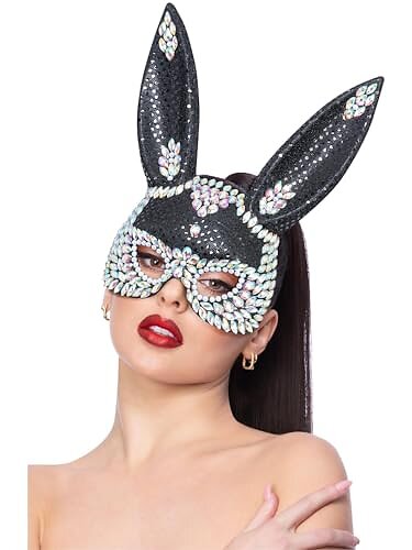 Smiffys 53010 Black Fever Jewel Sequin Bunny Mask
