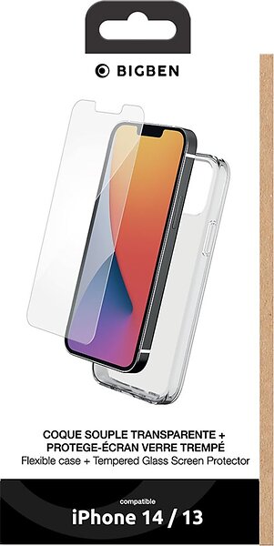Bigben Connected Coque 2-en-1 avec protection d'écran en verre trempé pour iPhone 13 / iPhone 14