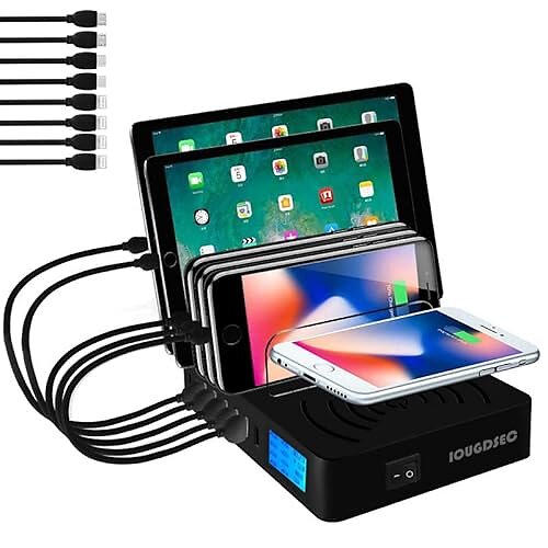 IOUGDSEC Station de charge 8 ports avec chargeur sans fil PD20W QC3.0 Chargeur rapide