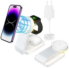 tigratigro Station de Charge 3-en-1 Mag-safe Chargeur sans Fil Pliable 15W Argent W79