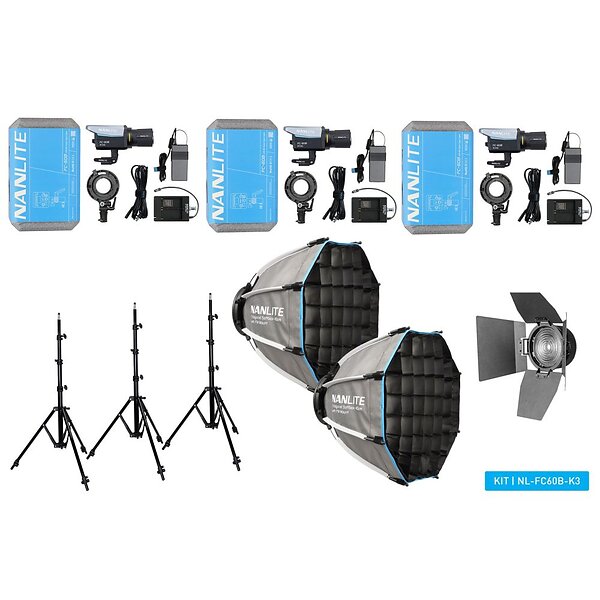 NANLITE FC-60B Kit de projecteur LED bicolore avec triple boîtier, pied d'éclairage, fresnel et softbox