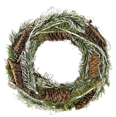 Flair Flower 244447N Couronne avec des branches de sapin mousse, des pommes de pin, voyage 25cm