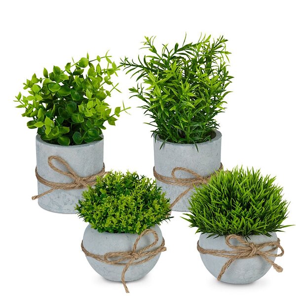 Relaxdays Plante Artificielle Set de 4 Romarin Buis Herbe Gris/Vert 10050349_469