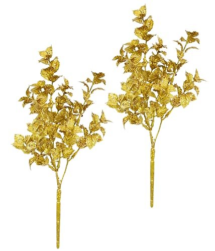 Flair Flower Plante Artificielle Mini Branche d'Ilex avec Paillettes 2 pcs Or 021360GO