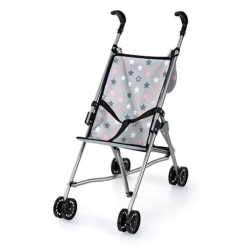 Bayer Design 30507AB Poussette Canne pour poupée avec Sac, Roues Doubles, Ceinture de sécurité, Pliable
