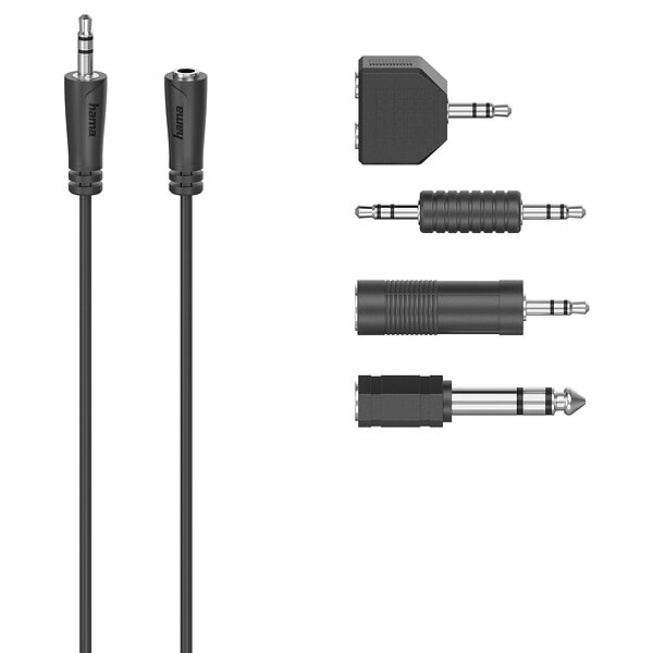 Hama X1122330 Ensemble de Connexion Audio AUX 2,5m Prise Jack 3,5 mm et Douille avec Adaptateurs