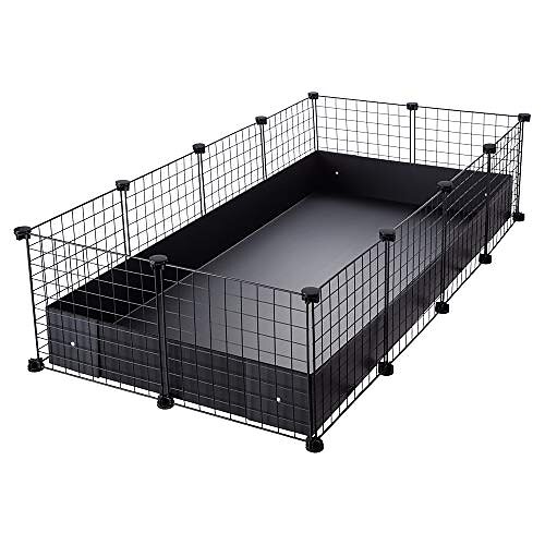 CagesCubes Grande cage (2 x 4 panneaux en noir) + Base en Coroplast noire pour cochons d'Inde