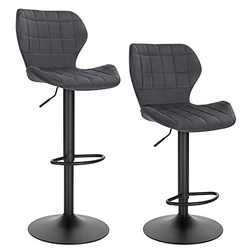 Woltu Ensemble de 2 Tabouret de bar 60-82cm Métal Velours BH324dgr-2