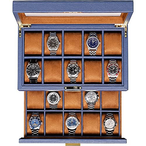 Rothwell Cuir RW20 Boîte à Montres pour 20 Montres (Marron/Bleu)