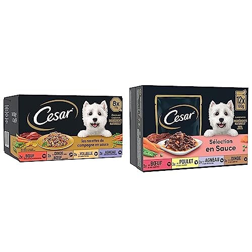 Cesar Repas pour Chien 24 Barquettes, Pâtée pour Chien en Sauce & Repas pour Chien 48 Sachets Fraîcheur