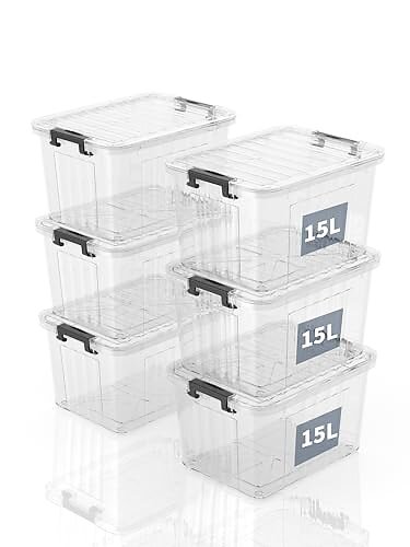 SpaceXpert Boîte de Rangement avec Couvercle Plastique 15L 6-pack