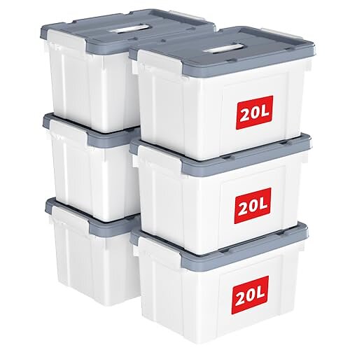 Cetomo 20L Boîte de Rangement avec Couvercle Plastique Pack de 6