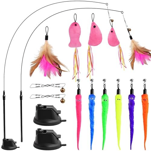 GingerUPer Jouet Interactif pour Chat Baguette à Plumes 13-Pack