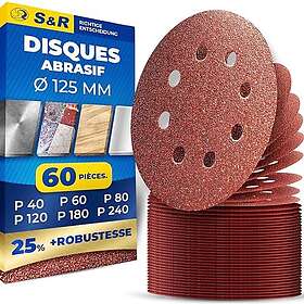 S&R 235.125.060 Disques à Poncer 125 mm Ensemble 60 pcs, Grain 40/60/80/120/180/240, 8 Trous
