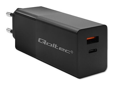 Qoltec Power Pro GaN Chargeur Mural avec 2 Ports (USB-C, USB) 100W