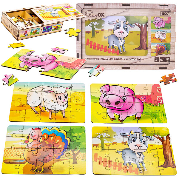 PuzzleOK Puzzle 4-en-1 Animaux Domestiques