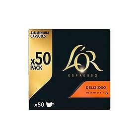 Le meilleur prix pour L'OR Espresso Delizioso 50 (Capsules) est actuellement de 16,99 €. leDénicheur compare les promos et les offres de 6 marchands en ligne.