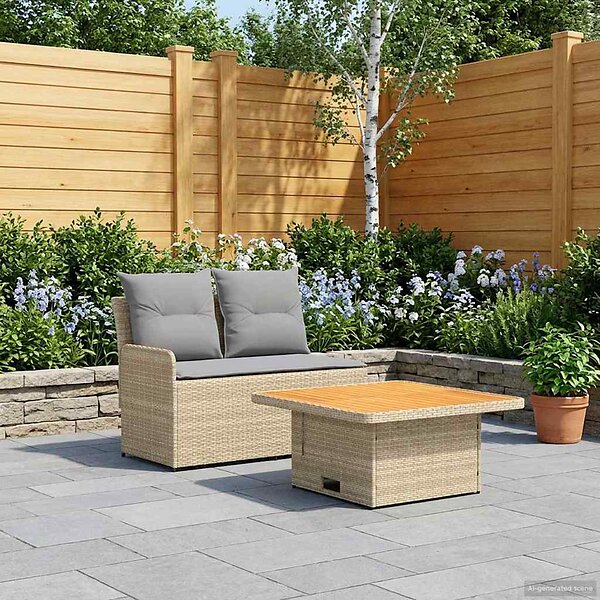 vidaXL Canapé d'extérieur avec accoudoirs et table relevable 2-pièces Beige