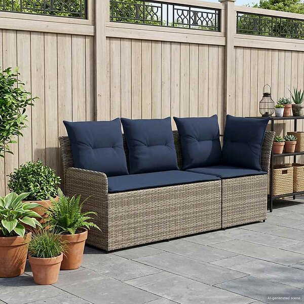 vidaXL Canapé de jardin avec accoudoir et canapé d'angle 2 pièces Gris et Bleu marine