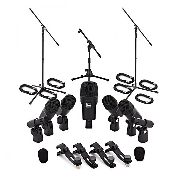 SubZero Complete 7 Piece Drum Microphone Pack avec Pieds & Câbles