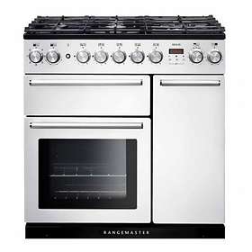 Largeur standard: 90, Type de plaque de cuisson: Gaz, Couleur: Blanc, Inox