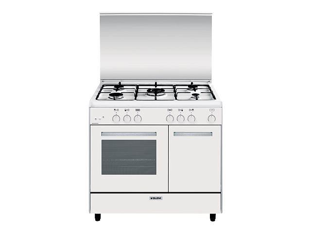 Largeur standard: 90, Type de plaque de cuisson: Gaz, Couleur: Blanc
